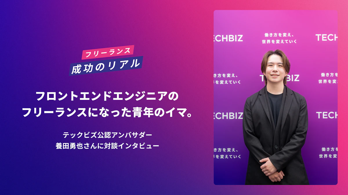 テックビズ公認アンバサダー・養田さんから、フリーランスへのメッセージ。「現場で評価されたり、バリューを出すこと」や、フリーランスで成功するために大切なこととは?
