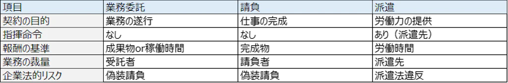 - 委託者は業務の進捗管理は可能だが、直接指揮命令することはできない