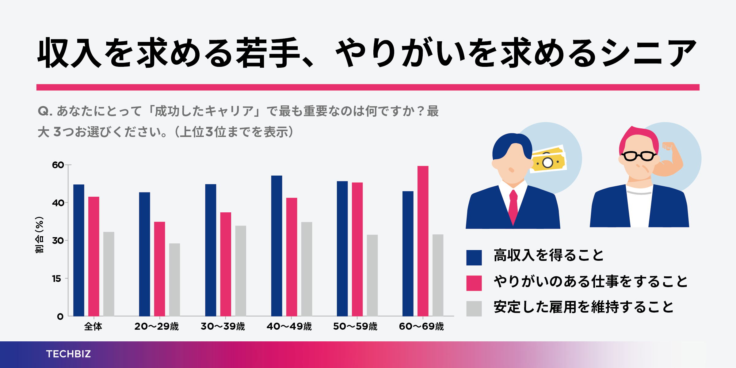 テックビズでは、こうした調査結果を踏まえ、年代別のキャリア特性に応じた支援プログラムの開発と、転職・独立を含む多様な働き方選択肢の提供を通じて、すべての世代が自分らしく働ける環境づくりに貢献してまいります。