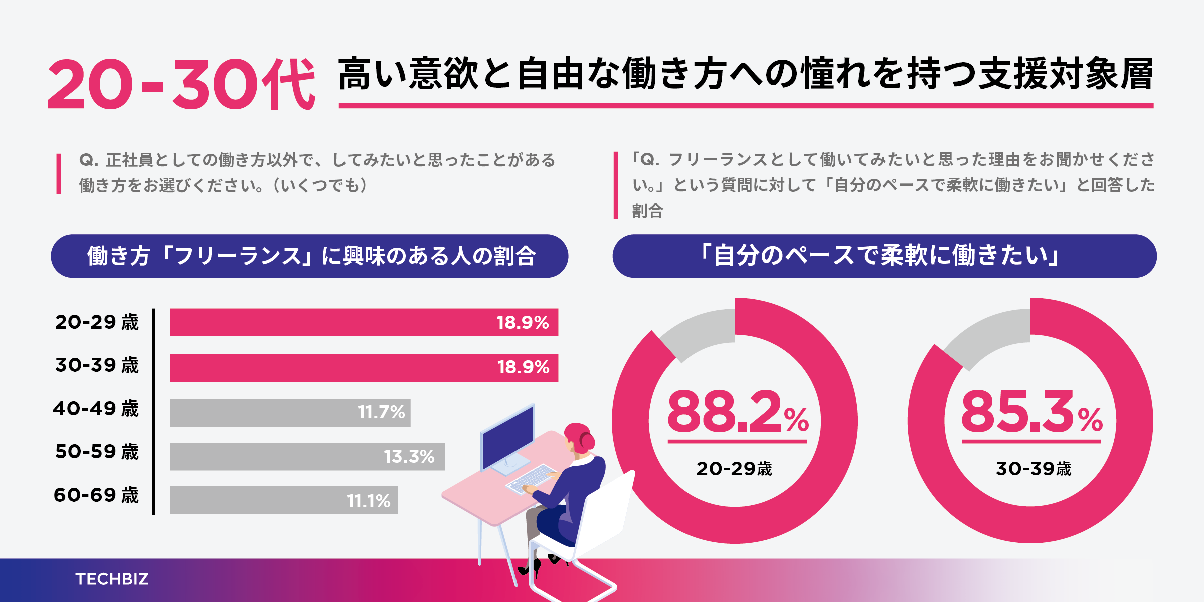 20-30代:高い意欲と自由な働き方への憧れを持つ支援対象層