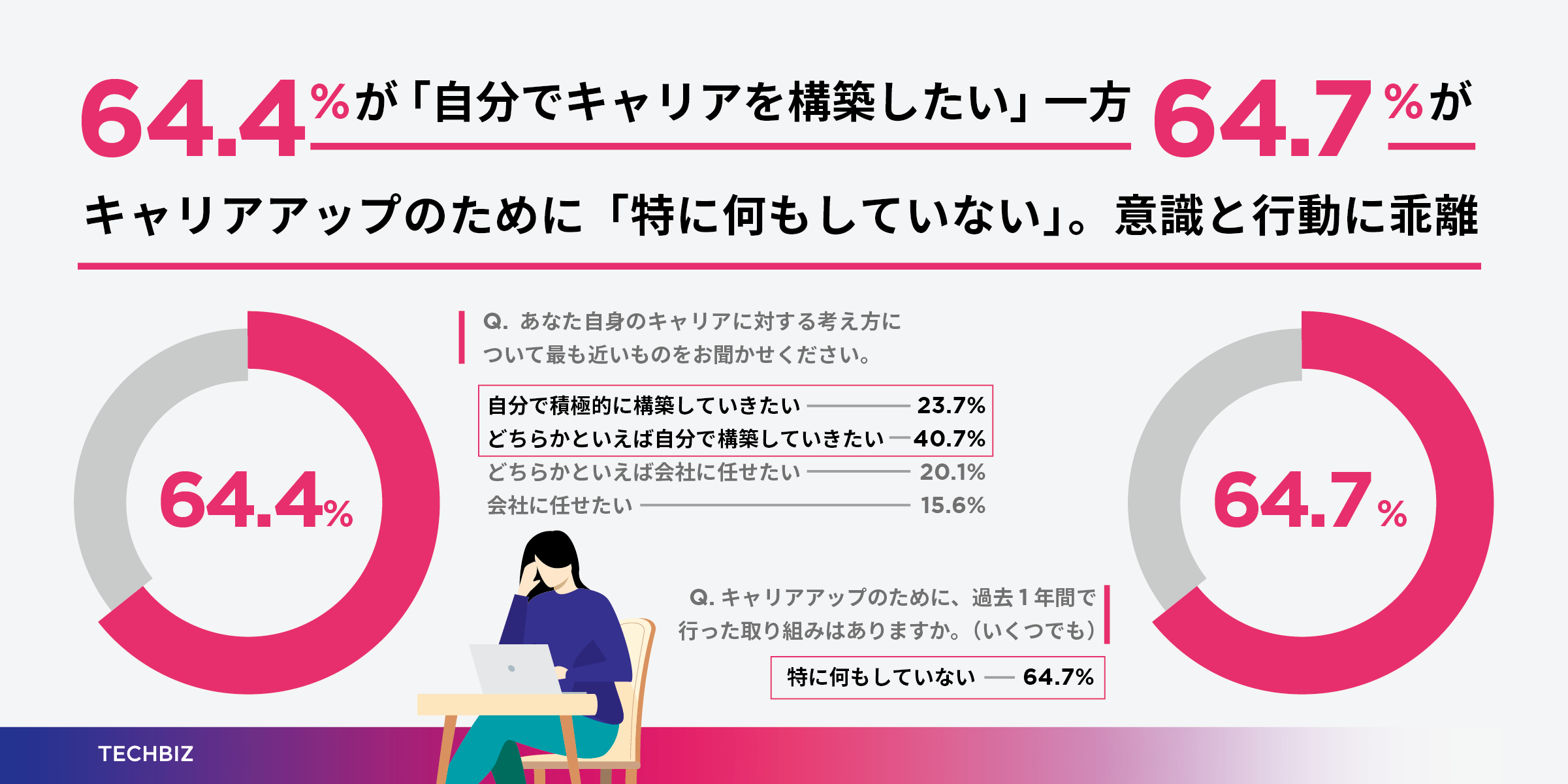 正社員900人にキャリアの自律性に関して調査:64.4%が「自分でキャリアを構築したい」一方で64.7%が「キャリアアップのために何もしていない」意識と行動の乖離が浮き彫りに